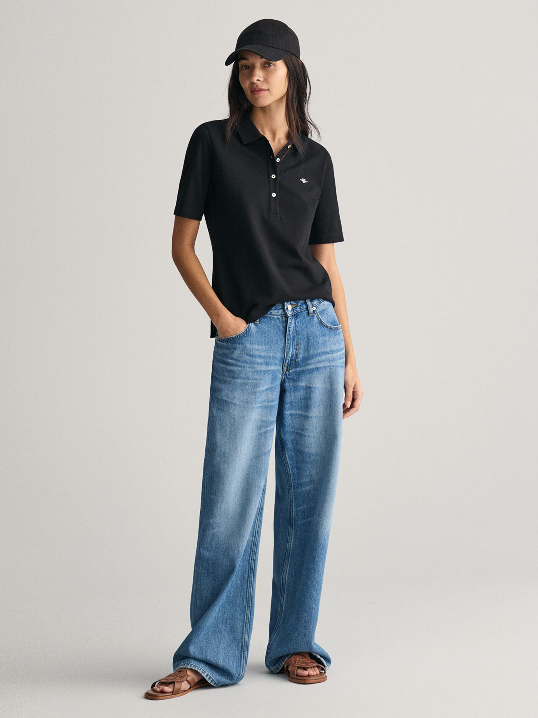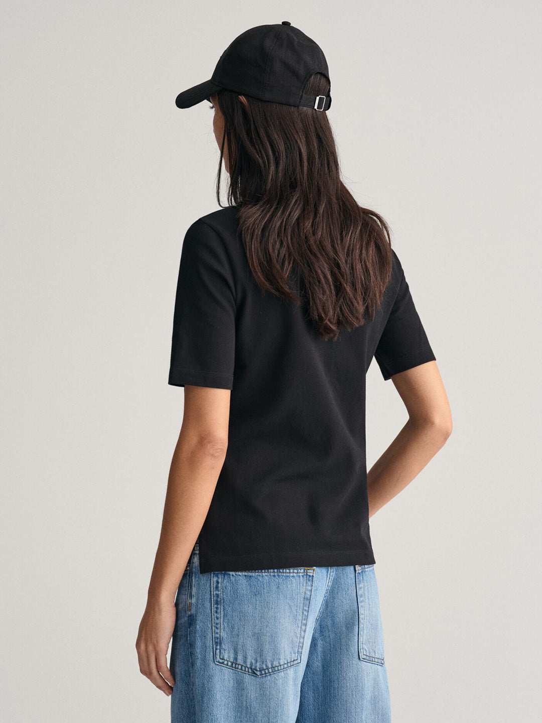 Gant Women Black Solid Short Sleeves Polo T-Shirt