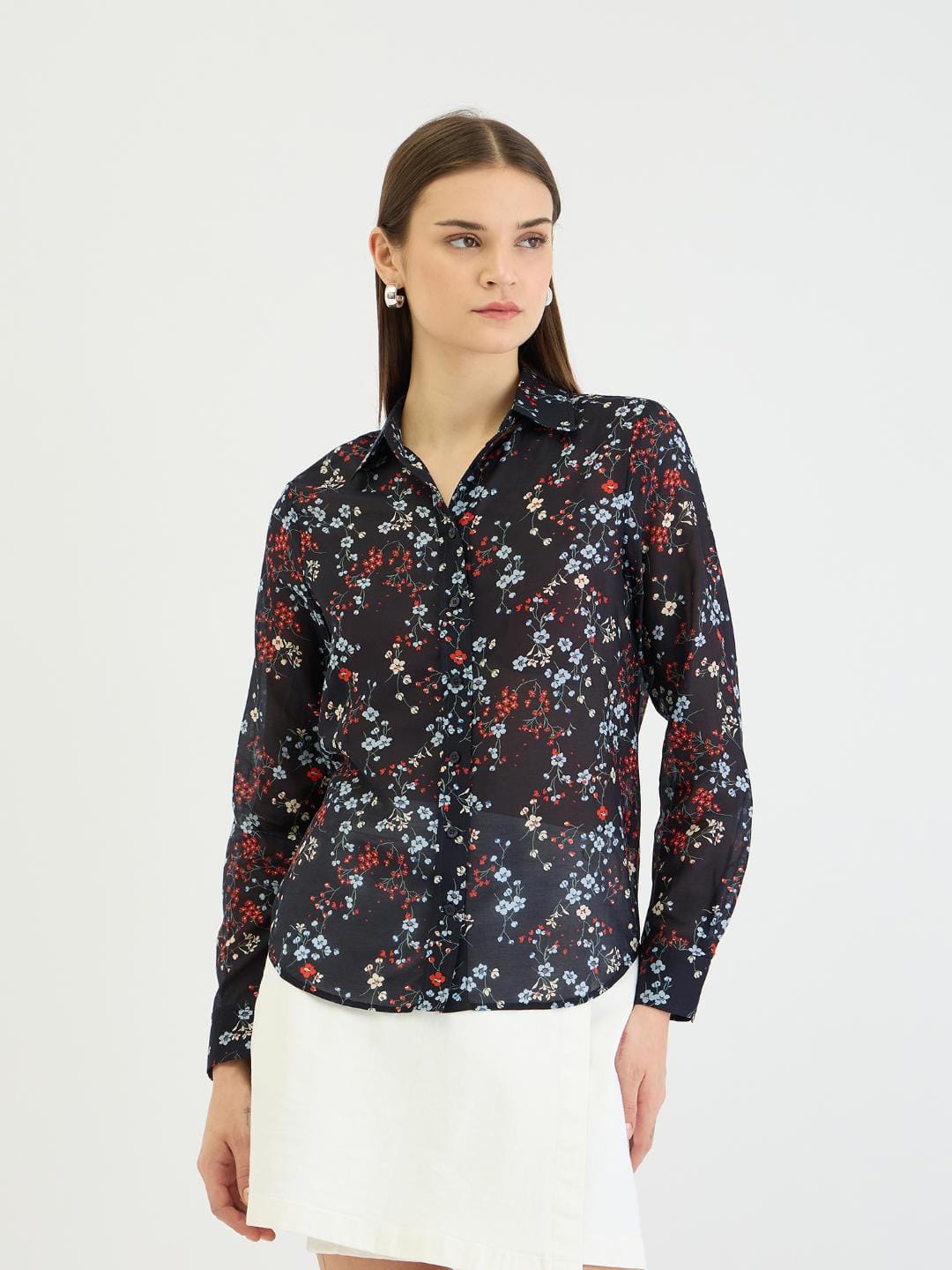 Embrace effortless style with this chic blue shirt. Crafted from a comfortable cotton blend, it features a flattering regular fit, full sleeves, and a classic spread collar. The eye-catching printed pattern adds a touch of personality, while the button closure ensures a secure and polished look. Perfect for casual outings or smart casual occasions, this versatile shirt is a must-have for any woman's wardrobe.