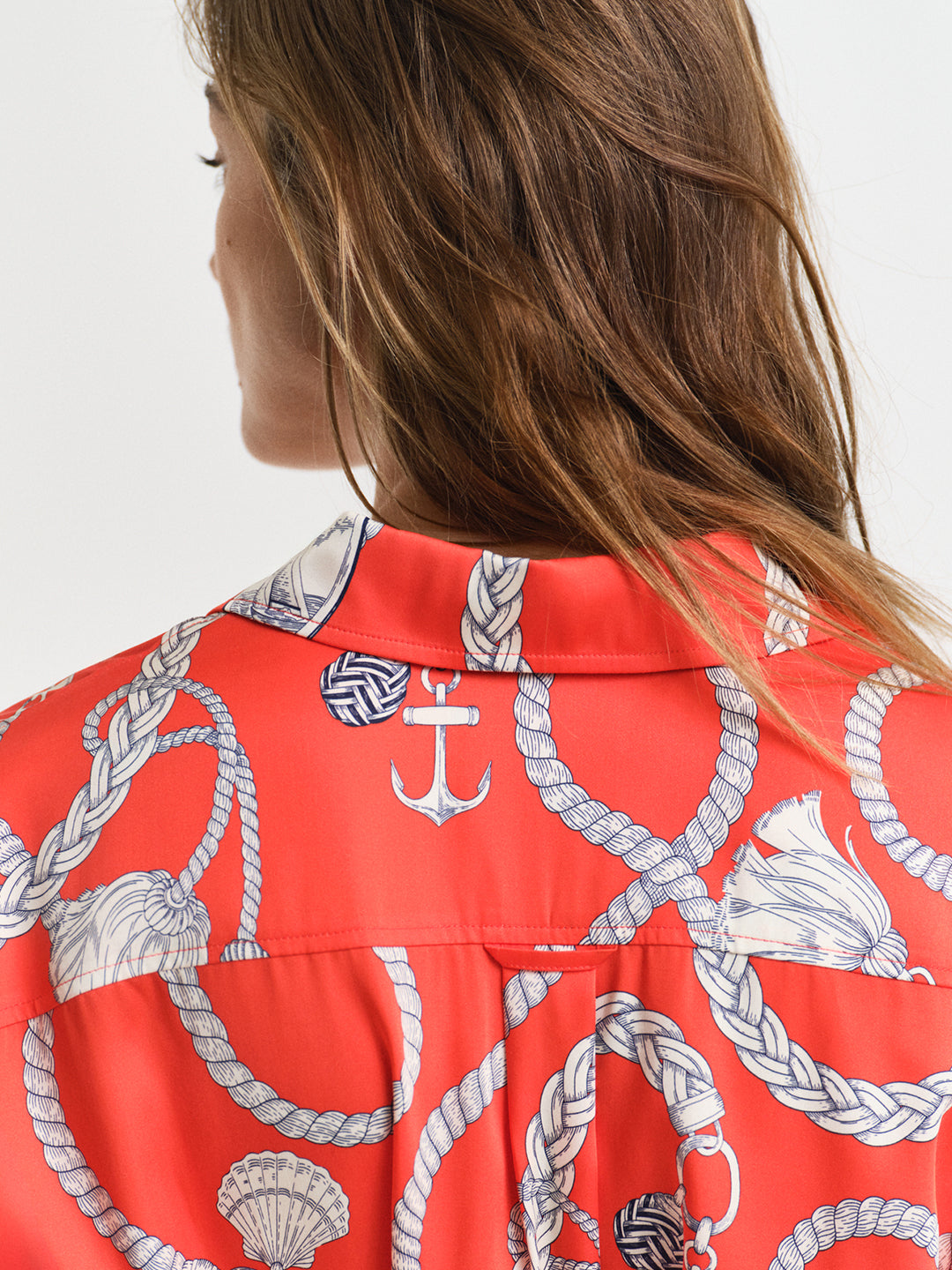 Embrace effortless chic in this vibrant red shirt dress. Crafted from a soft viscose blend, it drapes beautifully with a relaxed fit that flatters every figure. The playful printed pattern adds a touch of whimsy, while the classic shirt collar and full sleeves provide a timeless appeal. Perfect for casual days or dressed up with heels for a night out, this dress is a versatile wardrobe staple.