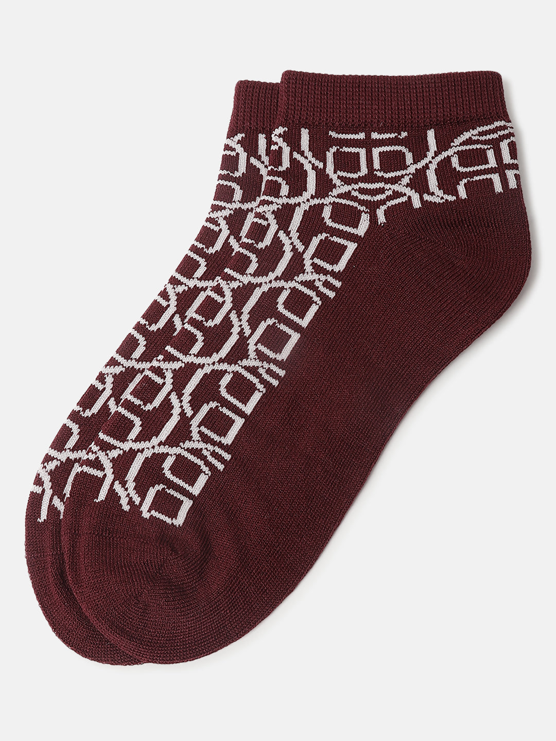 Women Red Patterned Ankle Length Socks (Pack of 3)