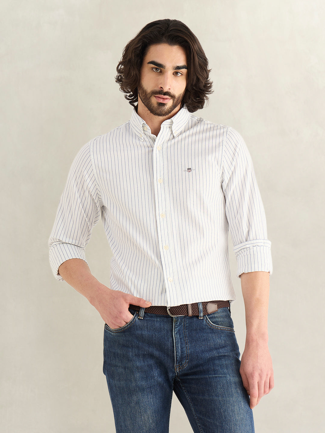 Elevate your wardrobe with the GANT Men's White Striped Shirt, a timeless classic that exudes sophistication and style. Crafted from high-quality materials, this shirt offers a comfortable fit and a polished look. The crisp white fabric is accented by subtle stripes, adding a touch of modern flair. Perfect for both casual and formal occasions, this versatile shirt will effortlessly take you from the office to a night out. Upgrade your outfit with this essential piece that combines classic design with contemporary details.