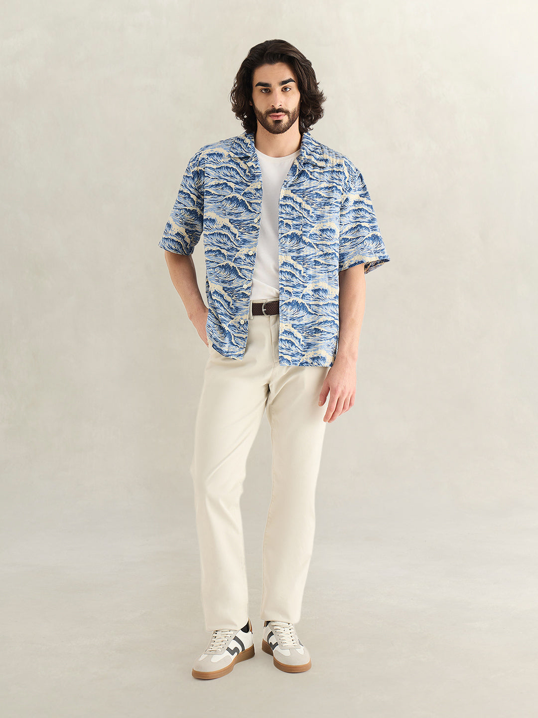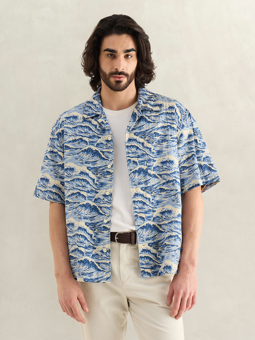 Mens Blue Printed Shirt