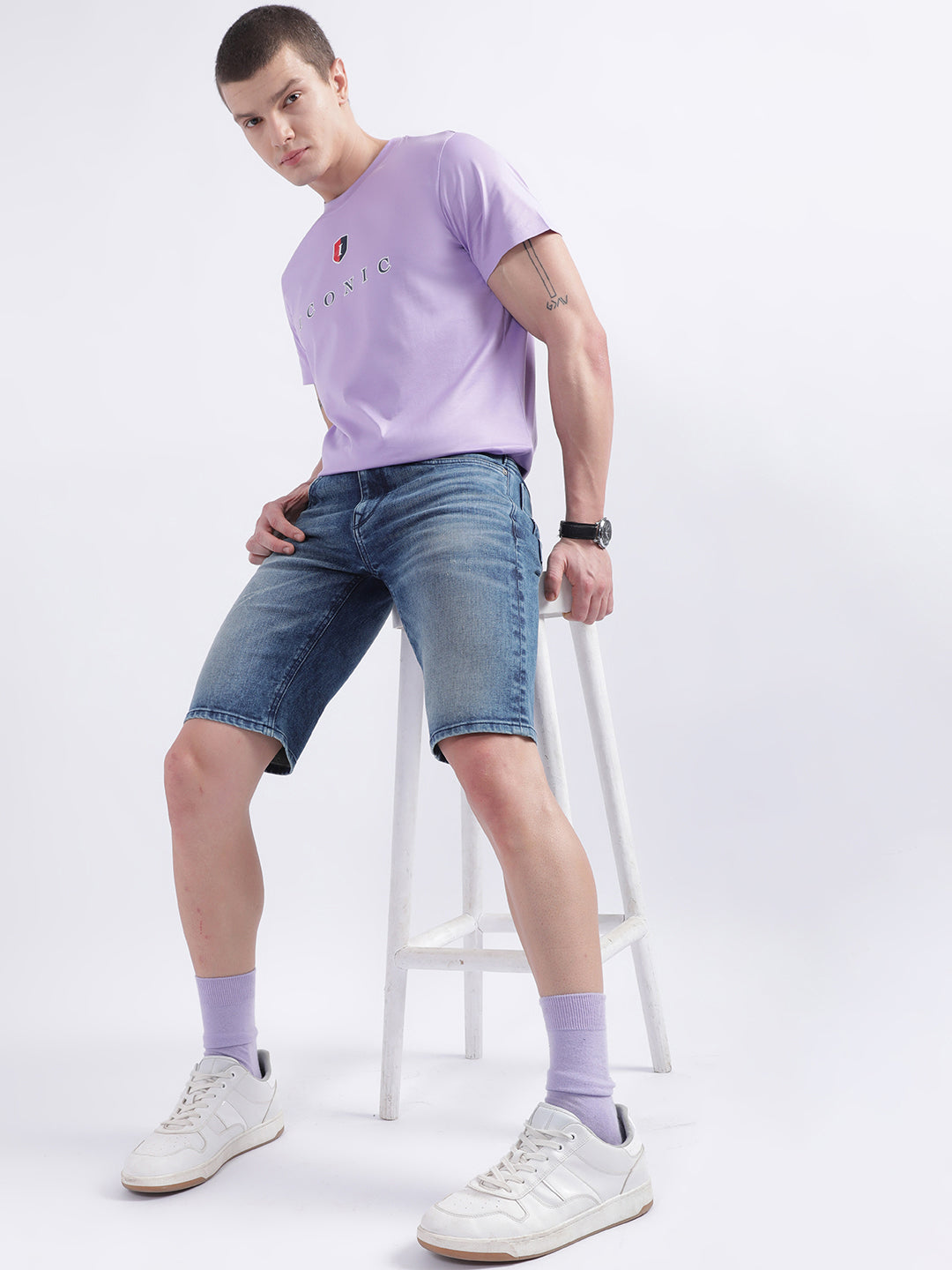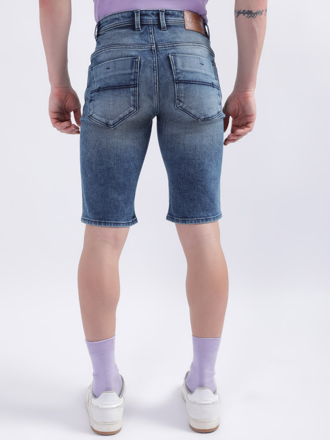 Iconic Men Blue Solid Regular Fit Mid-Rise Shorts