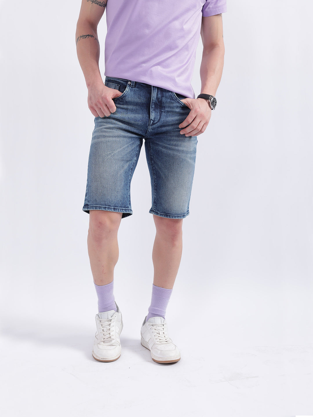 Men Blue Solid Regular Fit Mid-Rise Shorts