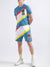 Iconic Mens Color Block Diagonal Stripe Crew Neck Tee With Iconic Print