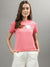 Elevate your casual wardrobe with our iconic womens embellished round neck t-shirt in a charming coral hue. Crafted from a blend of 95% cotton and 5% elastane jersey (220 gsm), this half-sleeve tee offers comfort and style. The exquisite embellishments add a touch of elegance to your everyday look.