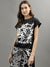 Women Black Printed Round Neck Top