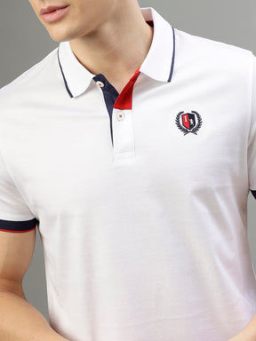 Introducing our classic white Polo T-Shirt, designed with a regular fit and half sleeves for ultimate comfort. Made from high-quality fabric, this solid-colored T-Shirt is perfect for any occasion. Elevate your style with this timeless piece that effortlessly combines sophistication and casual elegance.