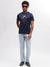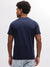 Iconic Men Navy Blue Solid Round Neck Short Sleeves Tshirt