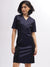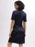 • Iconic Women Navy Blue Colour Blocked V-Neck Short Sleeves Dress