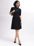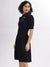 • Iconic Women Black Solid Shirt Collar Short Sleeves Dress