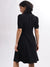 Women Black Solid Shirt Collar Short Sleeves Dress