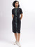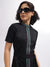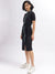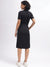 Iconic Women Black Solid Band Collar Short Sleeves Dress