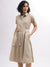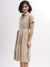Iconic Women Beige Solid Shirt Collar Short Sleeves Dress