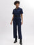 Women Navy Blue Solid Shirt Collar Short Sleeves Jumpsuit