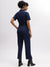 • Iconic Women Navy Blue Solid Shirt Collar Short Sleeves Jumpsuit