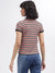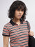 Women Multi Striped Polo Collar Short Sleeves Tshirt