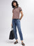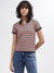 Iconic Women Multi Striped Polo Collar Short Sleeves Tshirt