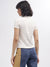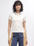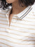 Iconic Women White Striped Polo Collar Short Sleeves Tshirt