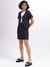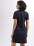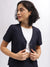 Iconic Women Navy Blue Solid V-Neck Short Sleeves Blazer