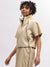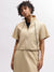 Iconic Women Beige Solid High Neck Short Sleeves Top