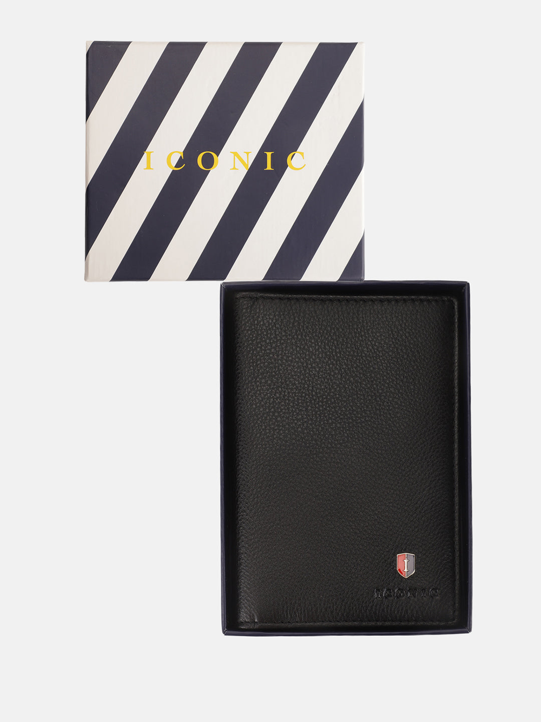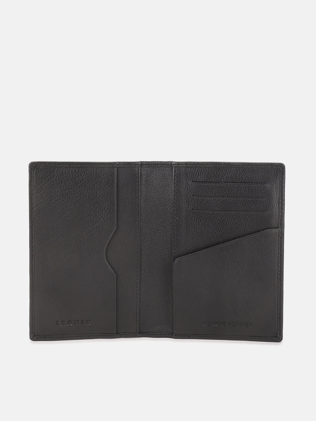 Elevate your travel style with this sleek, black passport holder crafted from 100% genuine leather. The textured pattern adds a touch of sophistication, while the compact design keeps your essentials secure and organized. Perfect for the discerning gentleman on the go.