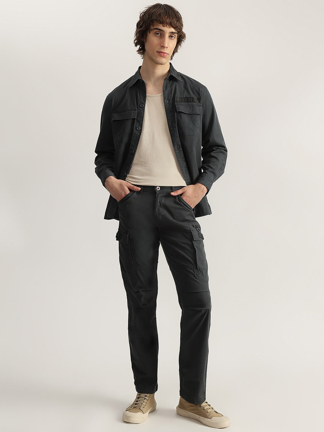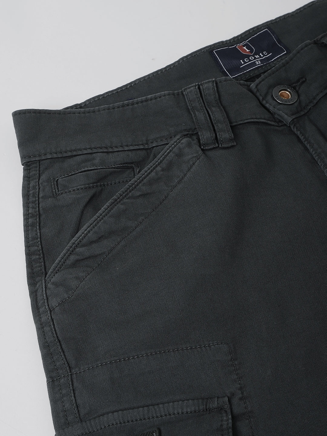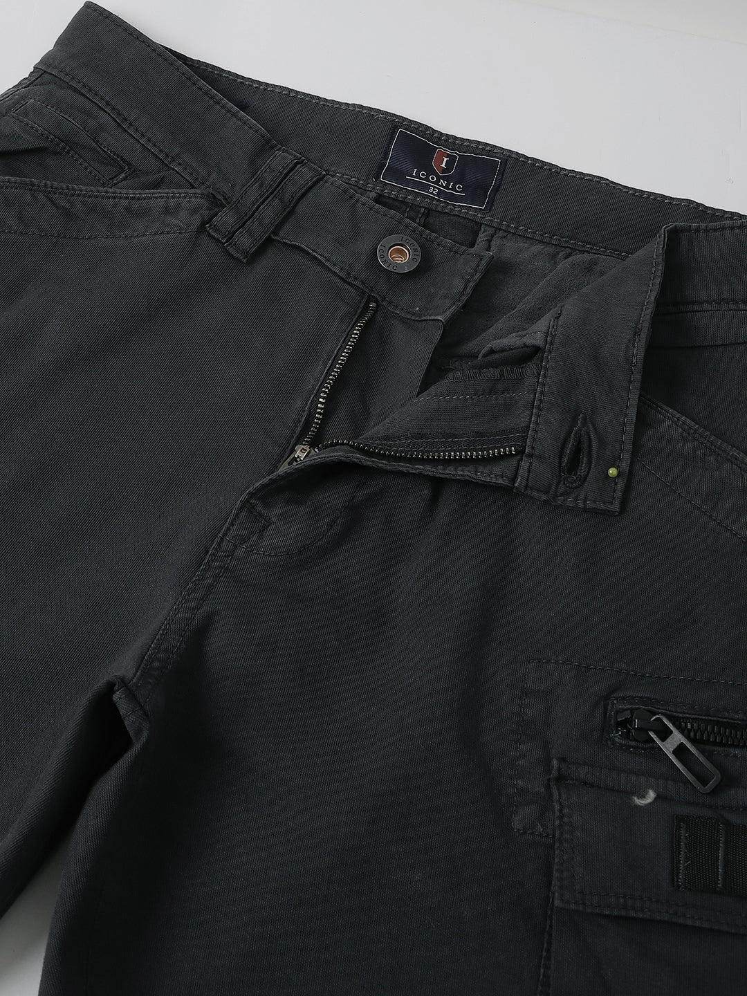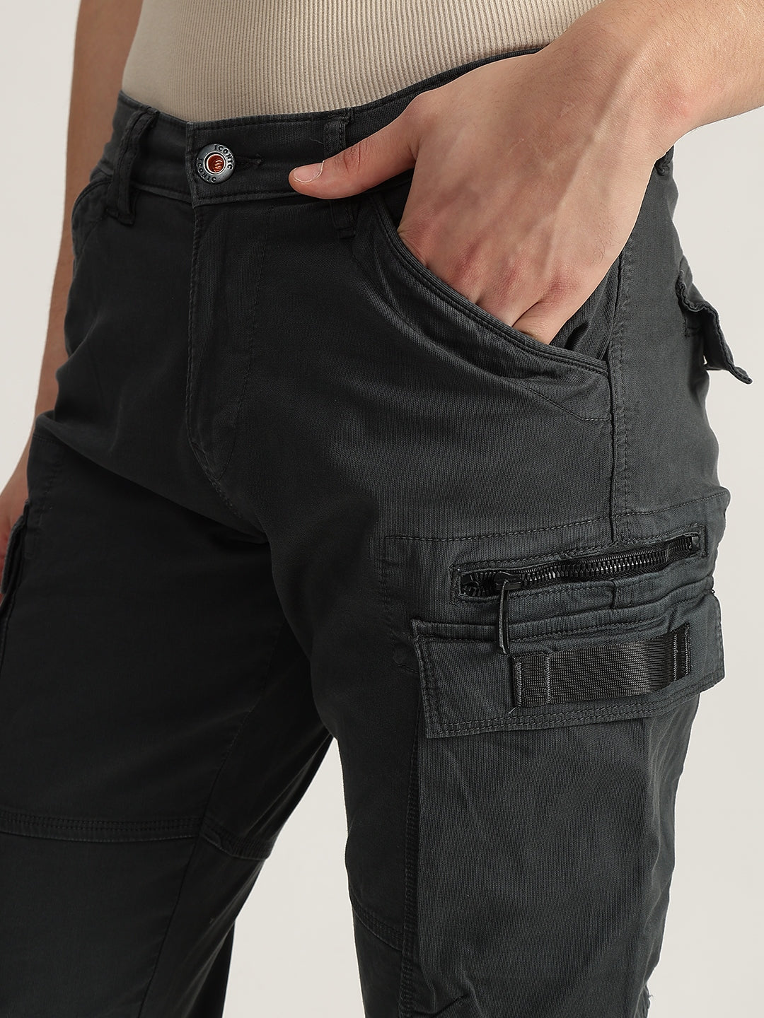 Elevate your casual style with these grey cargo trousers. Crafted from 100% cotton, they feature an oversized fit, mid-rise waist, button and zip closure, and multiple functional pockets. Perfect for everyday wear.
