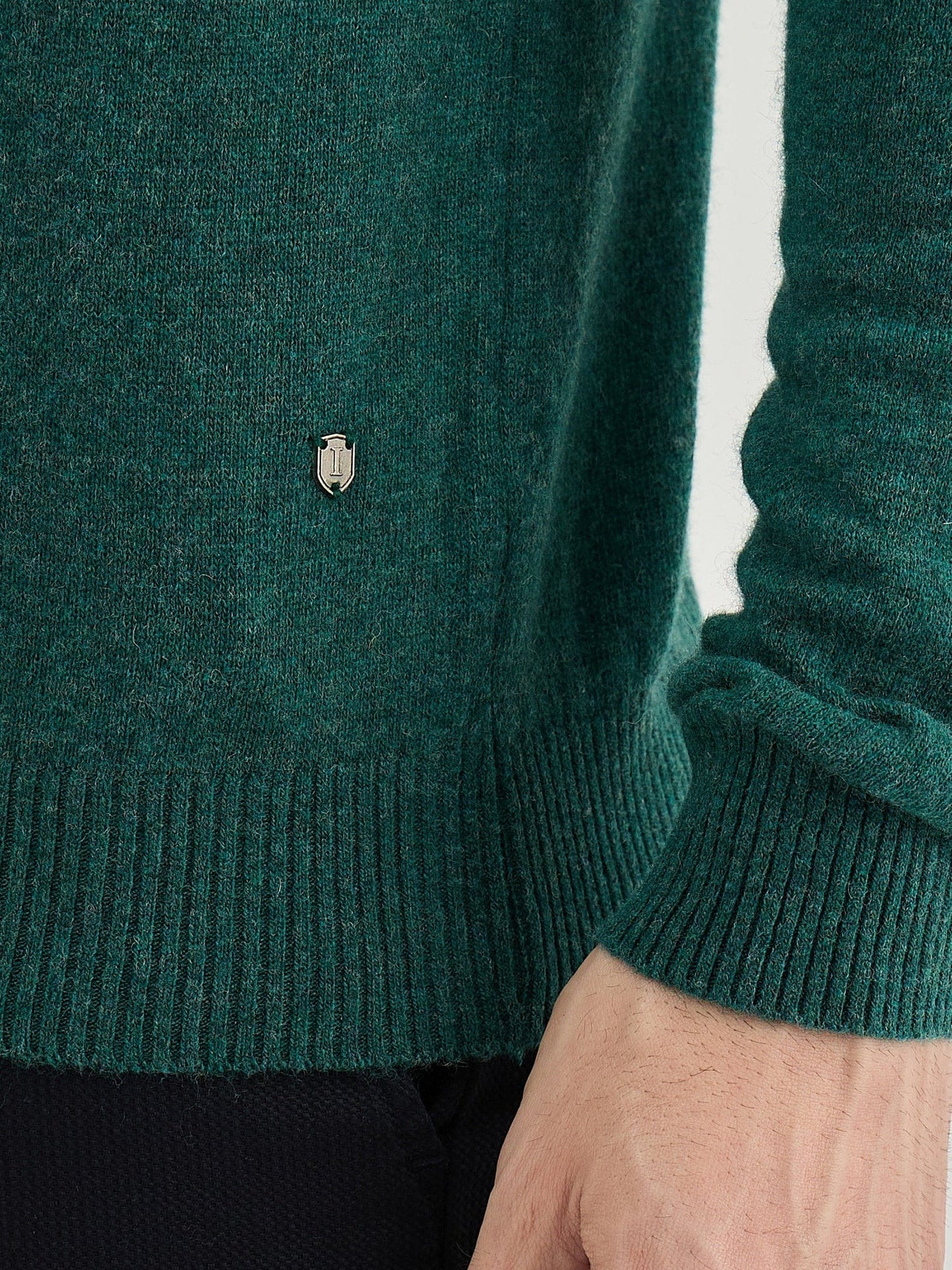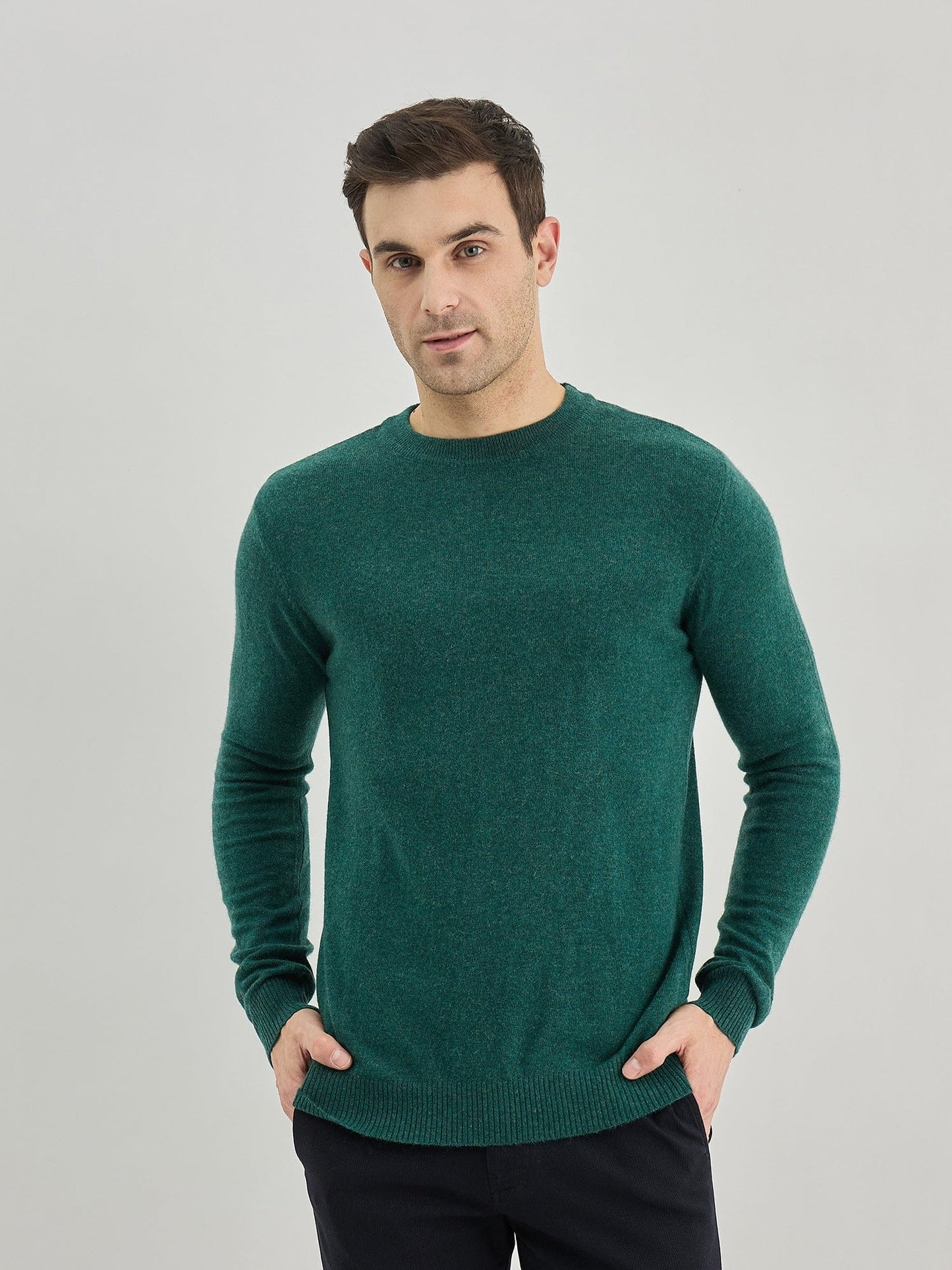 Introducing our classic men's sweater in a rich green hue, crafted from premium lambswool for ultimate comfort and warmth. This solid pattern sweater features a timeless round neck design and full sleeves, making it a versatile addition to any wardrobe. The pull-on closure ensures ease of wear, while the stretchable fabric offers a perfect fit that moves with you throughout the day. Ideal for layering or wearing on its own, this sweater combines style and functionality, making it an essential piece for both casual outings and more formal occasions. Elevate your look with this sophisticated yet cozy staple.