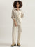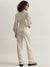 Effortlessly chic, this beige jumpsuit features a baggy fit, full sleeves, and a high neck for a flattering and comfortable silhouette. Crafted from soft polyester, it boasts a snap button closure for easy wear.