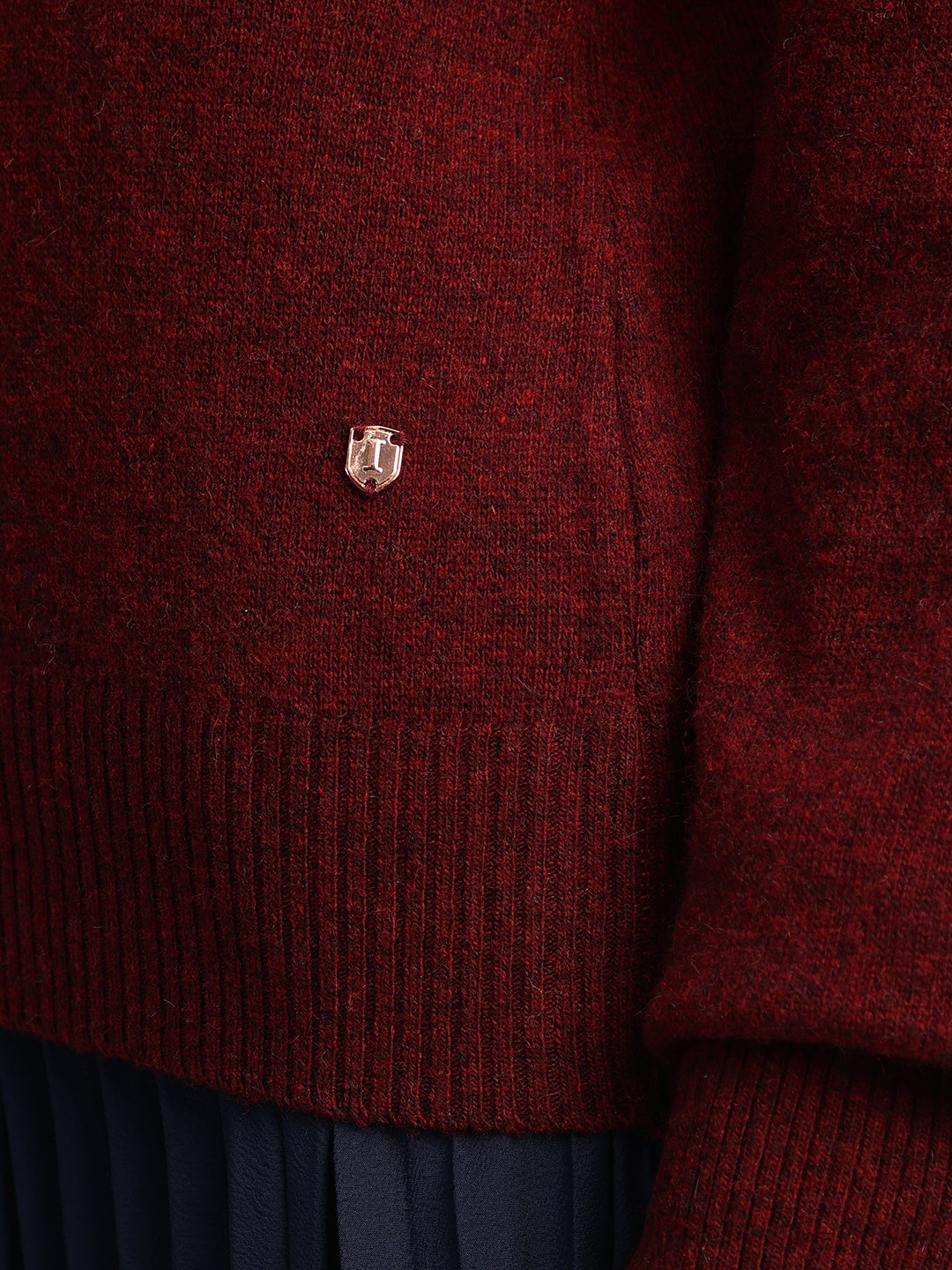 Embrace cozy elegance in this wine-colored sweater. Crafted from luxurious wool, it features a classic round neck, full sleeves, and a relaxed regular fit. The solid pattern and pull-on closure make it effortlessly chic.