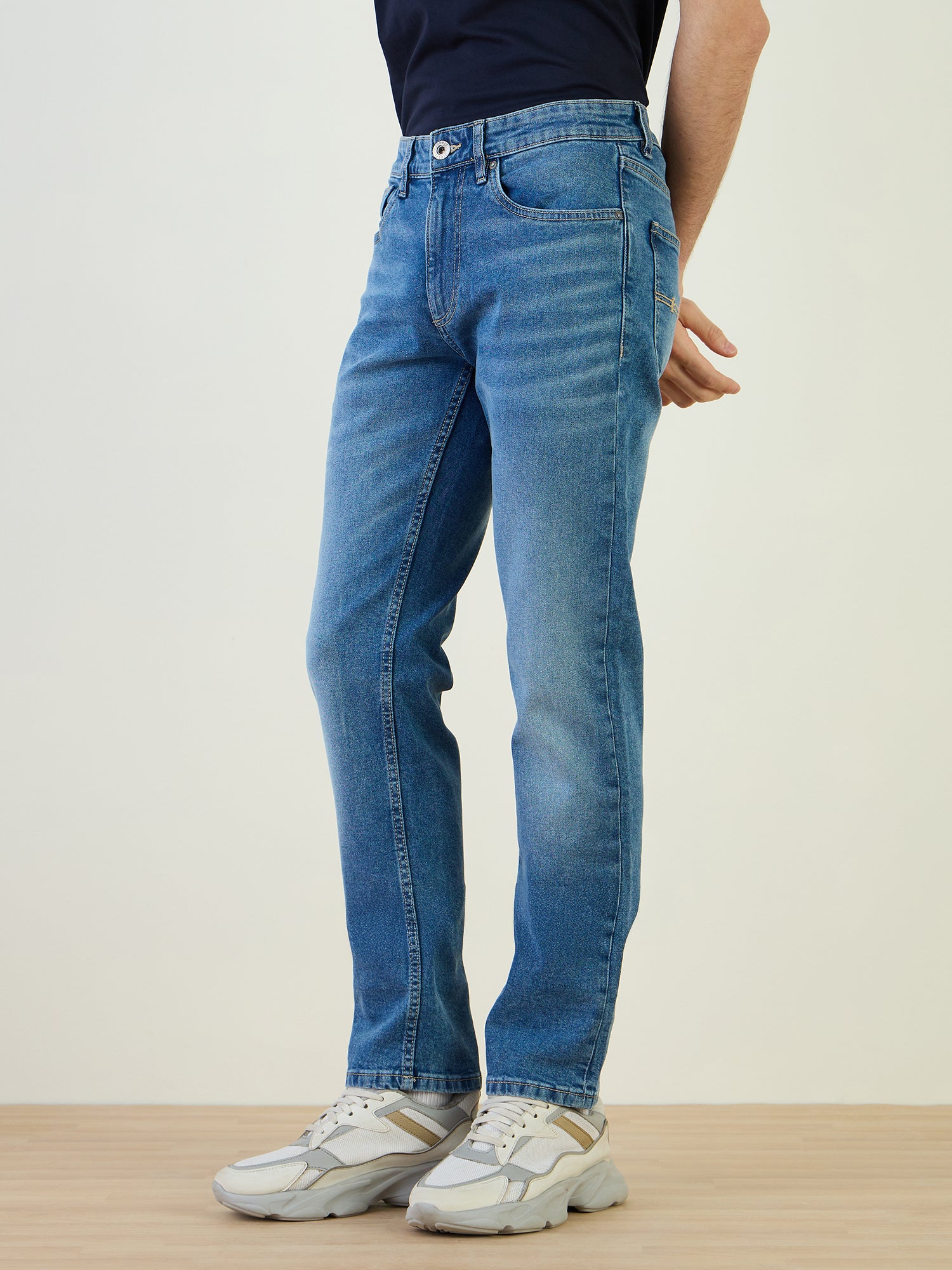 Discover the perfect blend of style and comfort with our Shank Button Washed Jeans in a classic blue hue. Designed for the modern man, these jeans feature a slim fit that effortlessly complements your silhouette. The high-rise design offers a flattering look, while the solid pattern adds a touch of sophistication. Crafted from a premium cotton blend fabric, these jeans are stretchable, ensuring ease of movement throughout your day. The shank button closure provides a secure fit, making these jeans a versatile addition to your wardrobe.