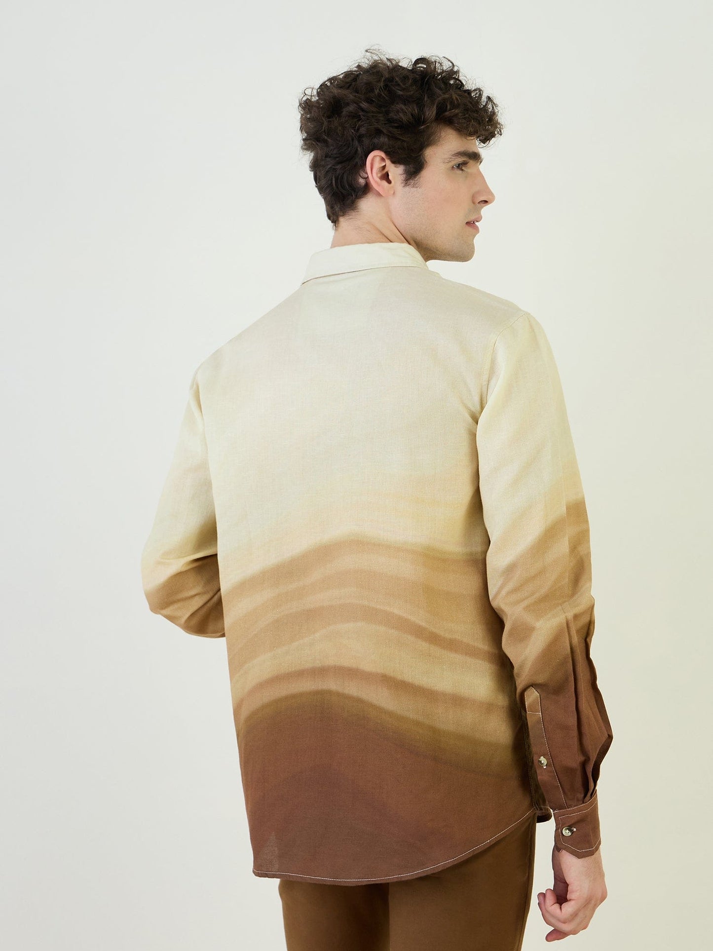 Elevate your wardrobe with our mens brown ombre shirt, crafted from pure cotton for ultimate comfort and breathability. This stylish piece features a regular fit that effortlessly complements any body type. The full sleeves and spread collar add a touch of sophistication, making it perfect for both casual outings and formal events. The button closure ensures a secure fit while maintaining a sleek appearance. Pair it with your favorite trousers or jeans for a versatile look that transitions seamlessly from day to night.