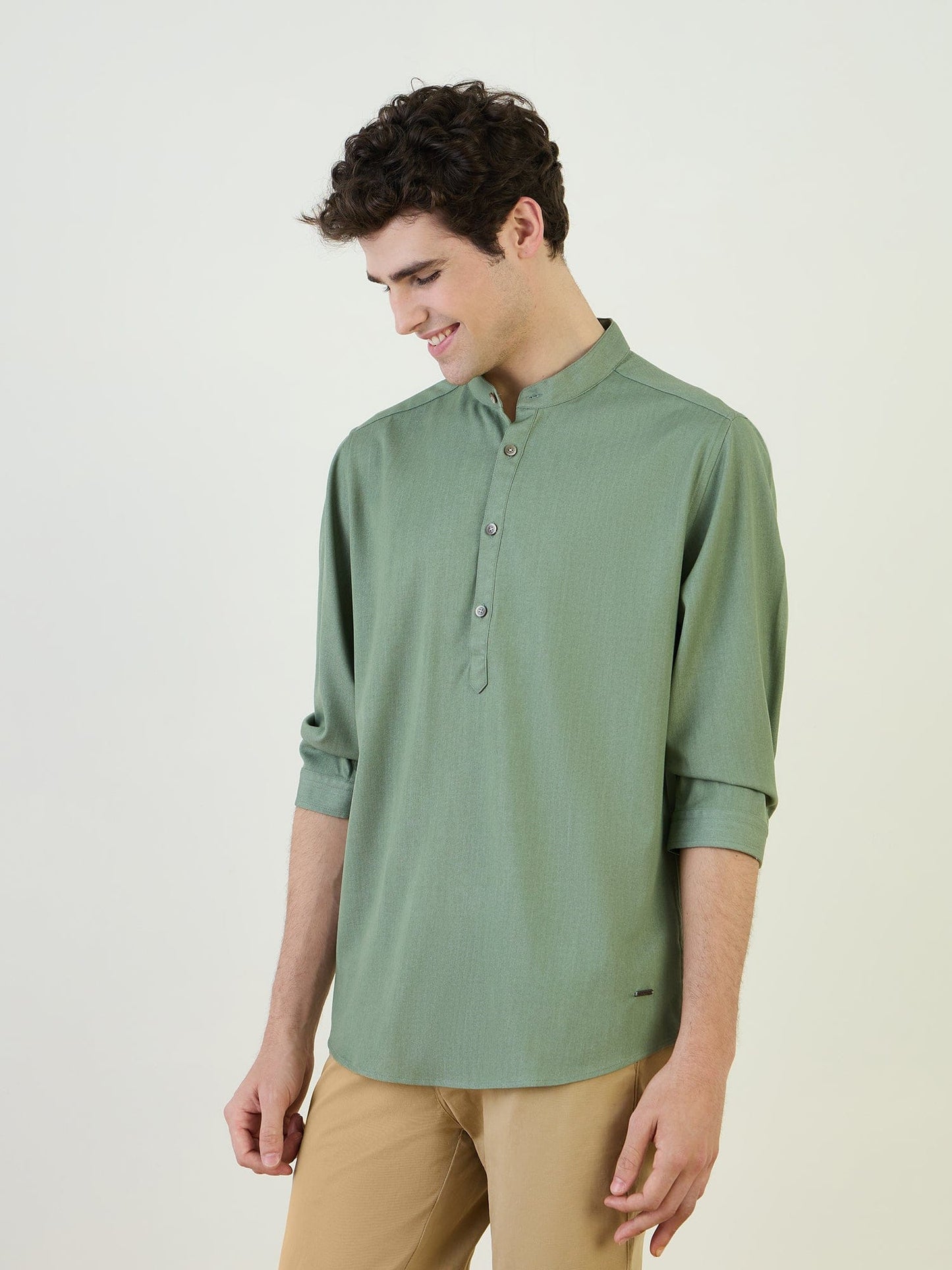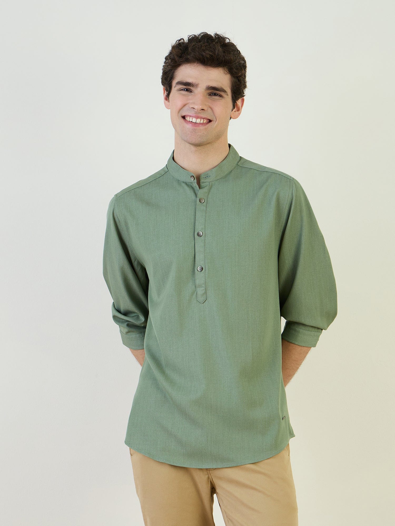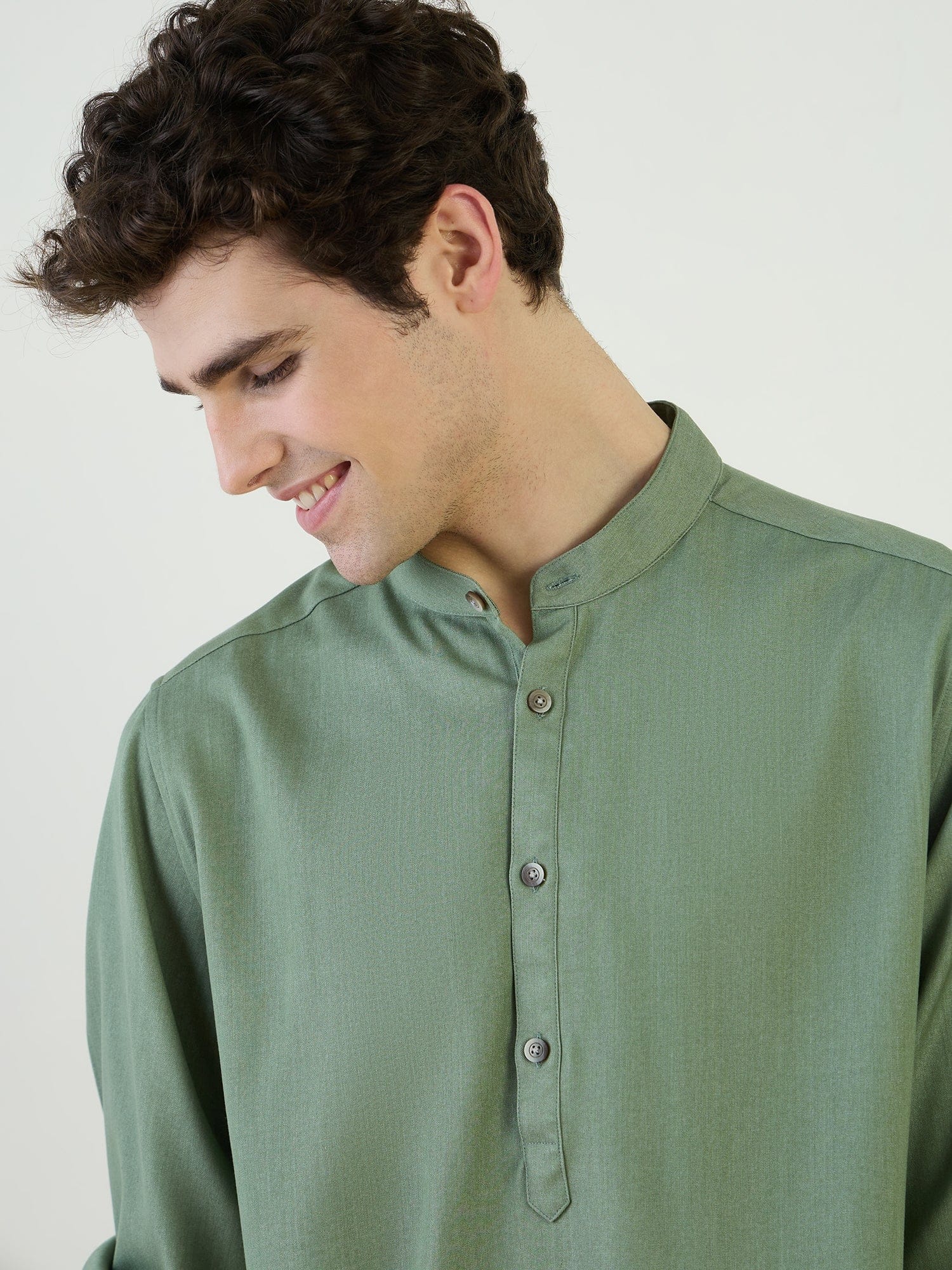 Discover the perfect blend of style and comfort with our men's green kurta shirt. Crafted from high-quality polyester fabric, this shirt offers a smooth and lightweight feel, ideal for any occasion. The solid pattern and 3/4th sleeves provide a modern touch, while the band collar adds a sophisticated edge. Featuring fancy buttons for a unique flair, this kurta shirt ensures a polished look. The button closure allows for easy wear, making it a versatile addition to your wardrobe. Elevate your style effortlessly with this must-have piece.