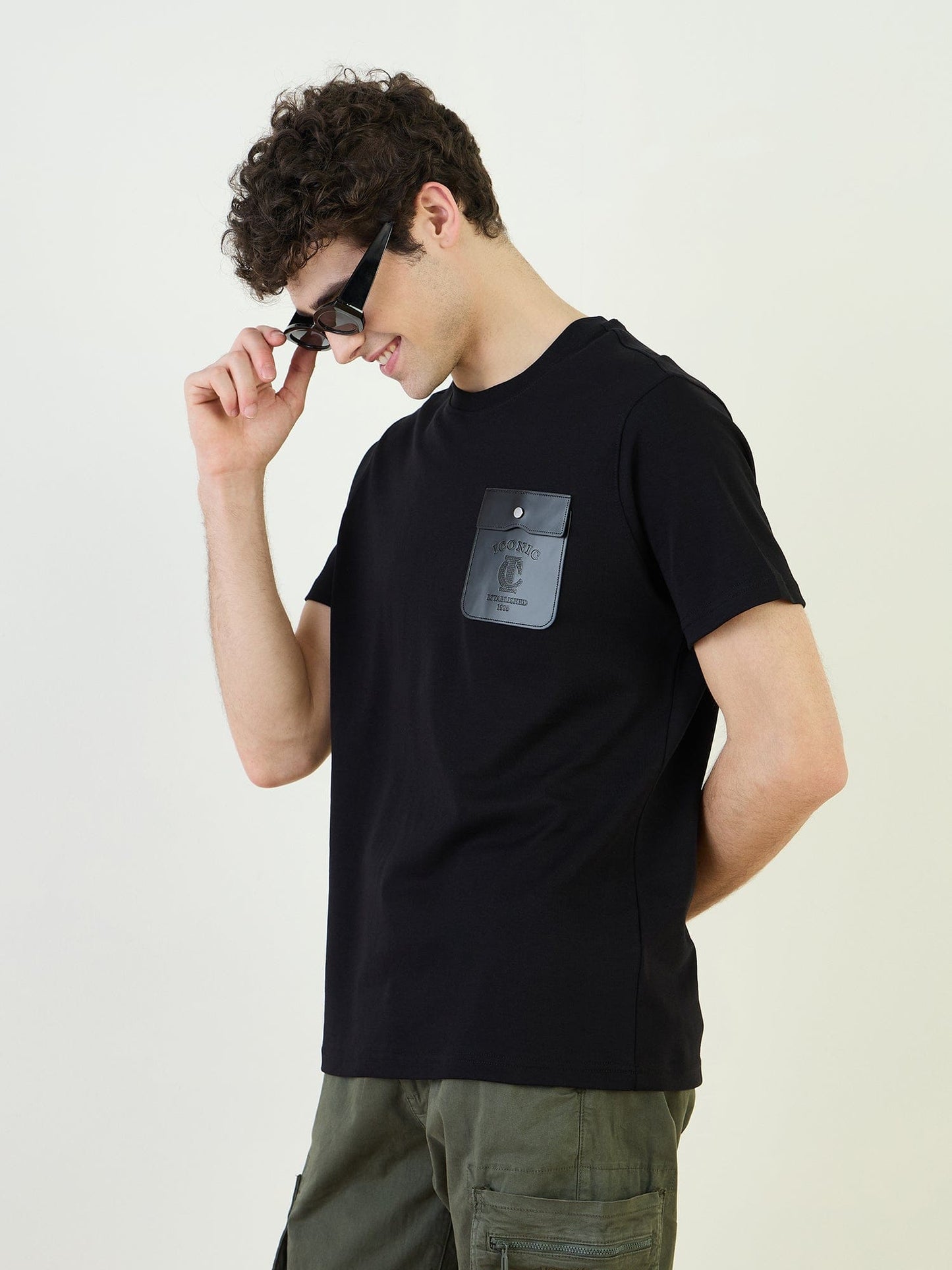 Men Black Round Neck TShirt