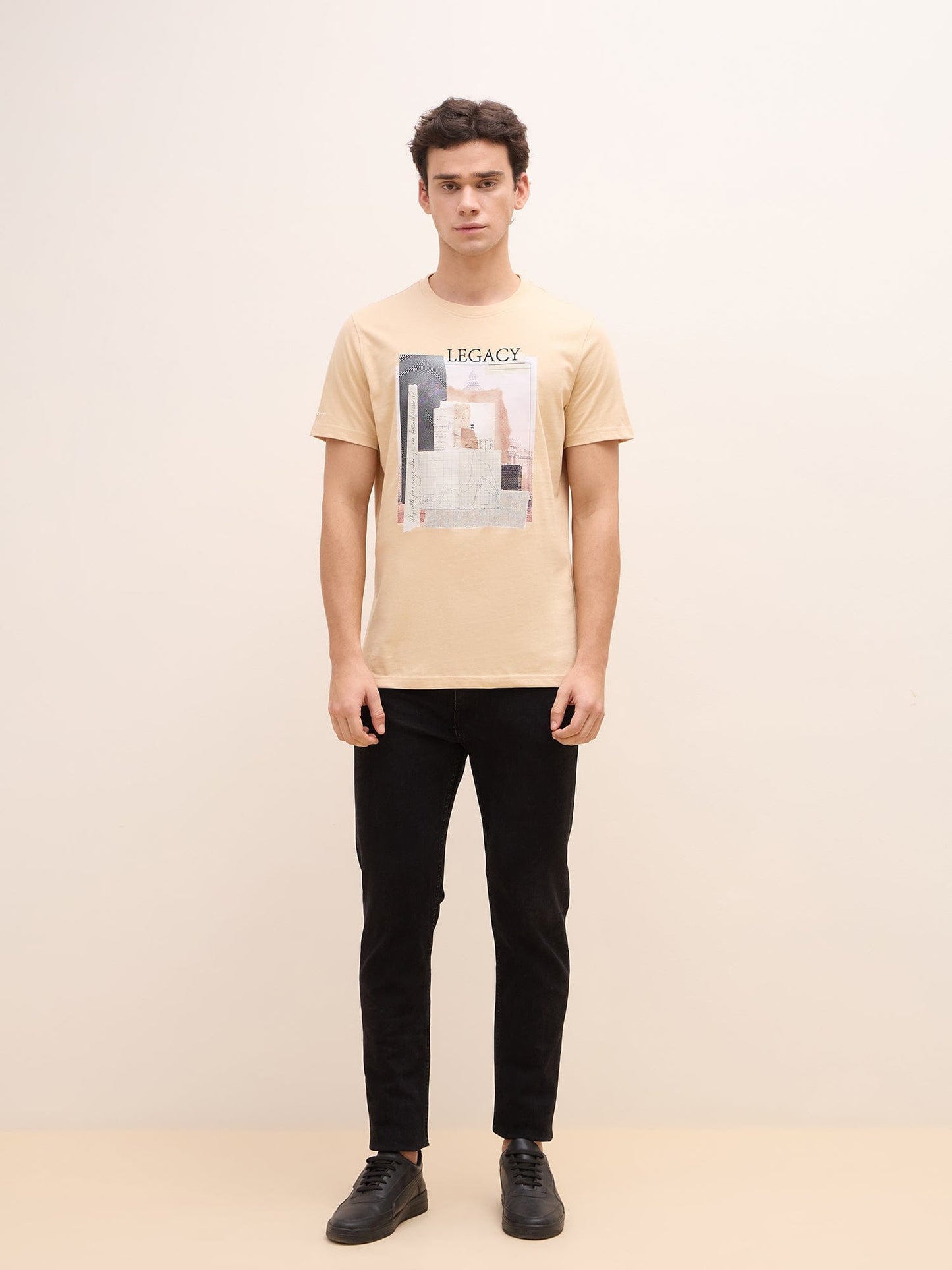 This beige t-shirt is a wardrobe essential for any man. Made from a comfortable cotton blend, it features a regular fit for a relaxed feel. The short sleeves and crew neck provide a classic look, while the printed pattern adds a touch of style. The slip-on closure makes it easy to put on and take off. This versatile t-shirt can be dressed up or down, making it perfect for any occasion.