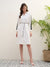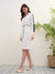 Elevate your wardrobe with our elegant shoulder tape dress in a pristine white hue. Crafted from pure cotton, this dress offers a structured pattern that exudes sophistication. The full sleeves and classic shirt collar add a touch of timeless style, while the button closure ensures a perfect fit. A chic chain belt cinches the waist, enhancing your silhouette with a modern twist. Ideal for both professional settings and casual outings, this versatile dress combines comfort and elegance, making it a must-have addition to your collection.