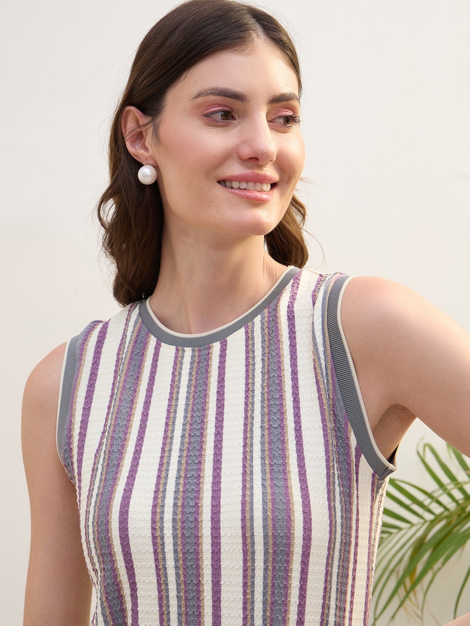 Discover the perfect blend of style and comfort with our stretchable dress featuring a chic chain belt. This multi-color masterpiece showcases a striking vertical stripes pattern that elongates your silhouette. Designed with a sleeveless cut and a classic round neck, this dress is crafted from high-quality polyester fabric, ensuring a soft and breathable fit. The convenient pull-on closure makes it easy to wear, while the versatile design transitions effortlessly from day to night. Ideal for any occasion, this dress is a must-have addition to your wardrobe.