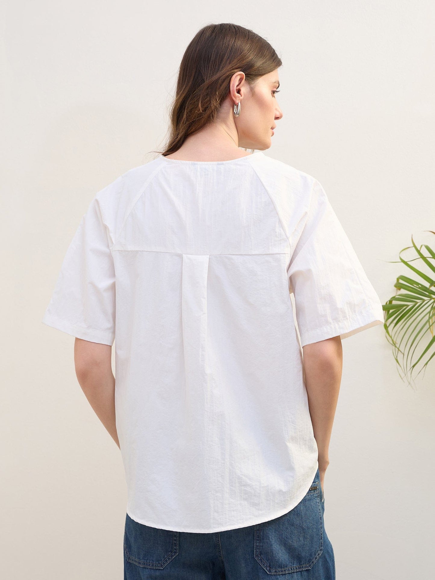 Discover effortless style with our women's white shirt, designed for those who appreciate comfort and elegance. This loose-fit shirt features a solid pattern, offering a timeless look that pairs well with any wardrobe. Crafted from pure cotton fabric, it ensures breathability and softness, making it perfect for all-day wear. The short sleeves and round neck add a touch of casual chic, while the button closure provides a classic finish. Ideal for both casual outings and professional settings, this shirt is a versatile must-have.