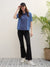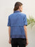 Women Blue Color Block Collar Shirt