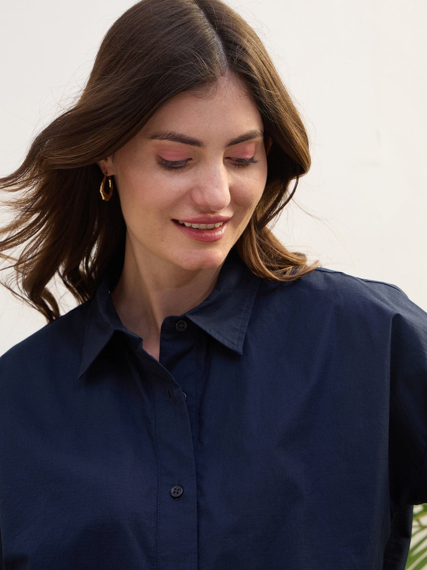 Discover effortless style with our womens blue shirt, designed for a relaxed fit that offers both comfort and elegance. Crafted from pure cotton, this shirt ensures breathability and softness, making it perfect for all-day wear. The solid pattern adds a touch of sophistication, while the short sleeves and spread collar provide a classic look. Featuring a convenient button closure, this versatile piece is ideal for both casual outings and professional settings. Elevate your wardrobe with this timeless essential.