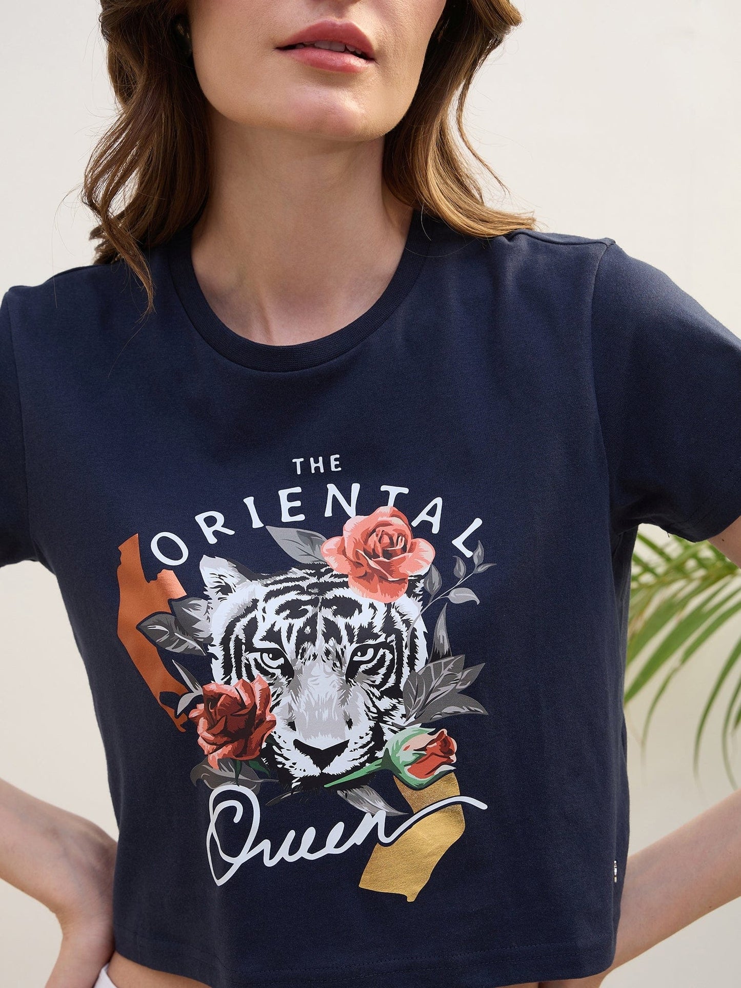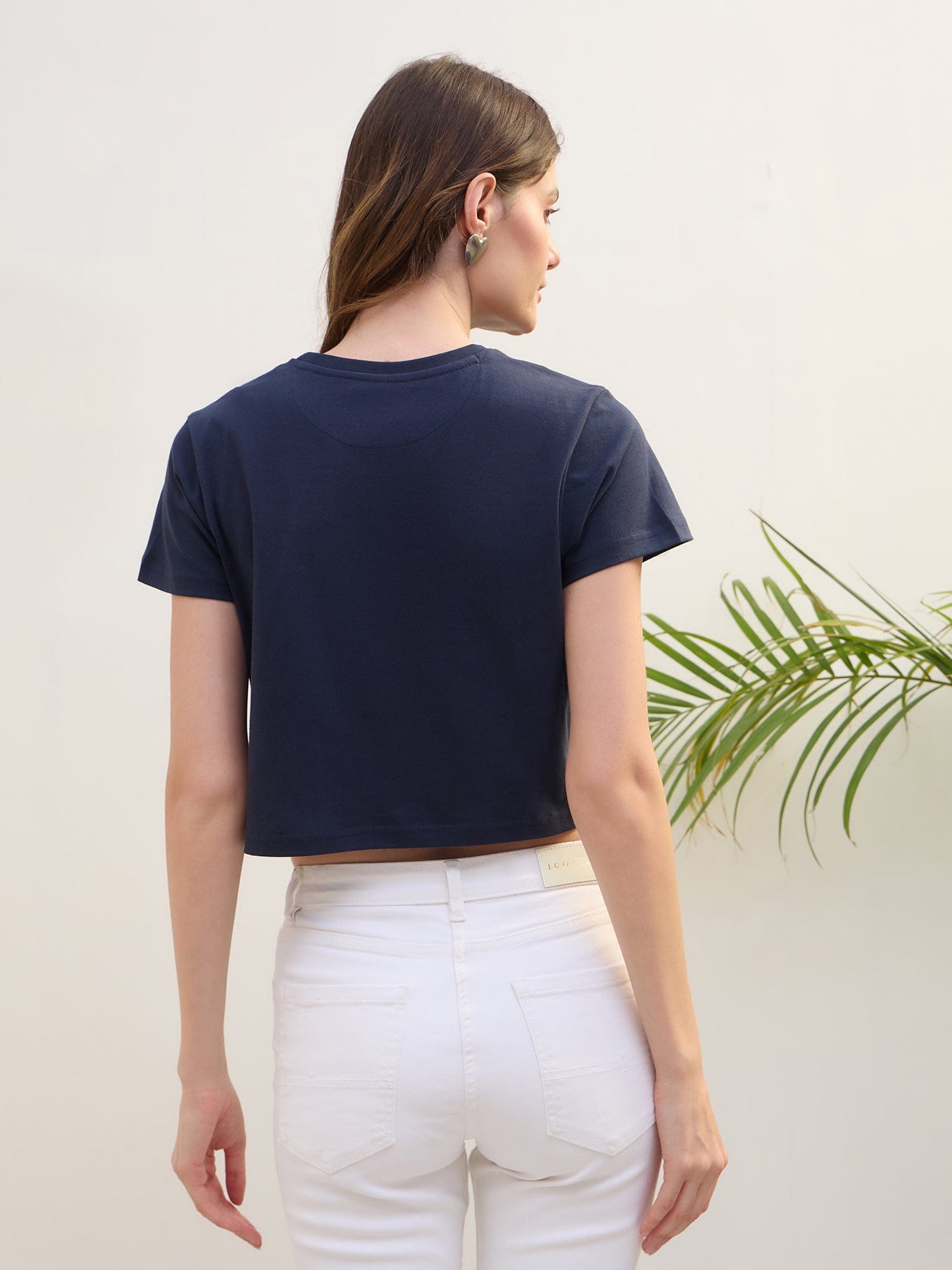 Discover the perfect blend of comfort and style with our stretchable blue crop t-shirt for women. Crafted from pure cotton fabric, this tee offers a soft touch and breathable wear, ideal for any casual outing. The eye-catching graphic print pattern adds a trendy flair, while the short sleeves and crew neck design ensure a classic fit. With a convenient pull-on closure, this t-shirt is easy to wear and versatile enough to pair with your favorite jeans or skirts. Elevate your wardrobe with this must-have staple.
