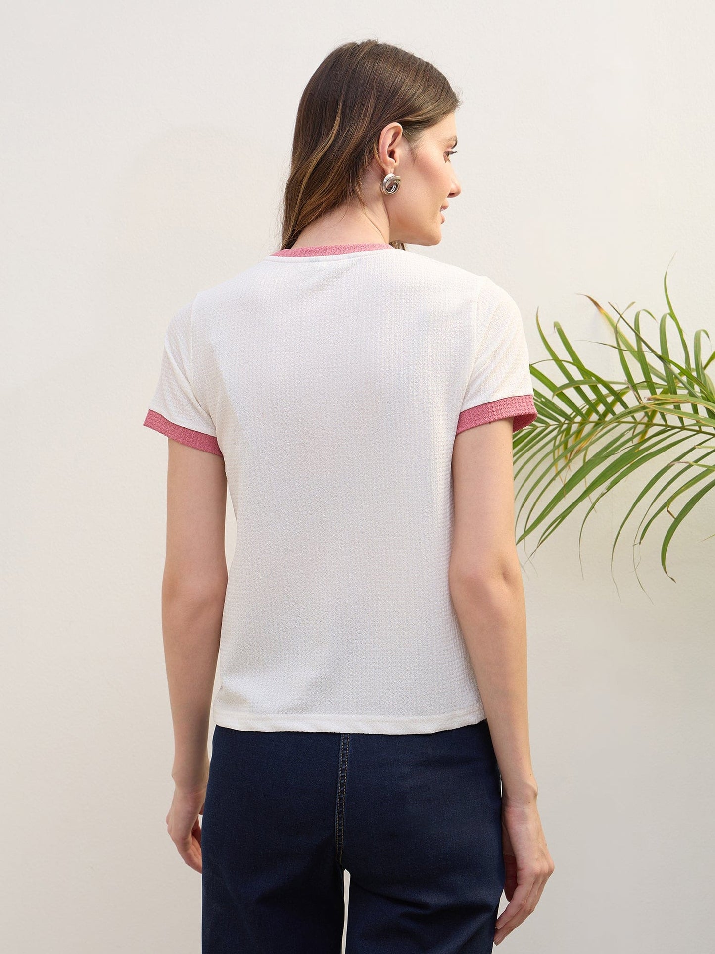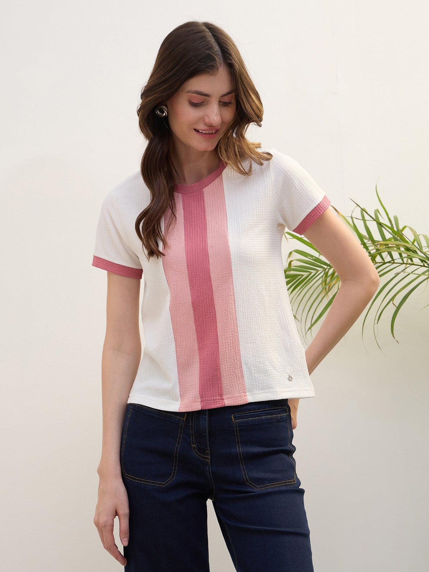 Discover the perfect blend of comfort and style with our stretchable pink color block t-shirt for women. Crafted from pure cotton fabric, this short sleeve tee offers a soft touch and breathable wear, ideal for any casual outing. The crew neck design adds a classic touch, while the pull-on closure ensures easy wearability. Its vibrant color block pattern brings a modern twist to your wardrobe, making it a versatile piece for pairing with jeans or skirts. Elevate your everyday look with this must-have essential.