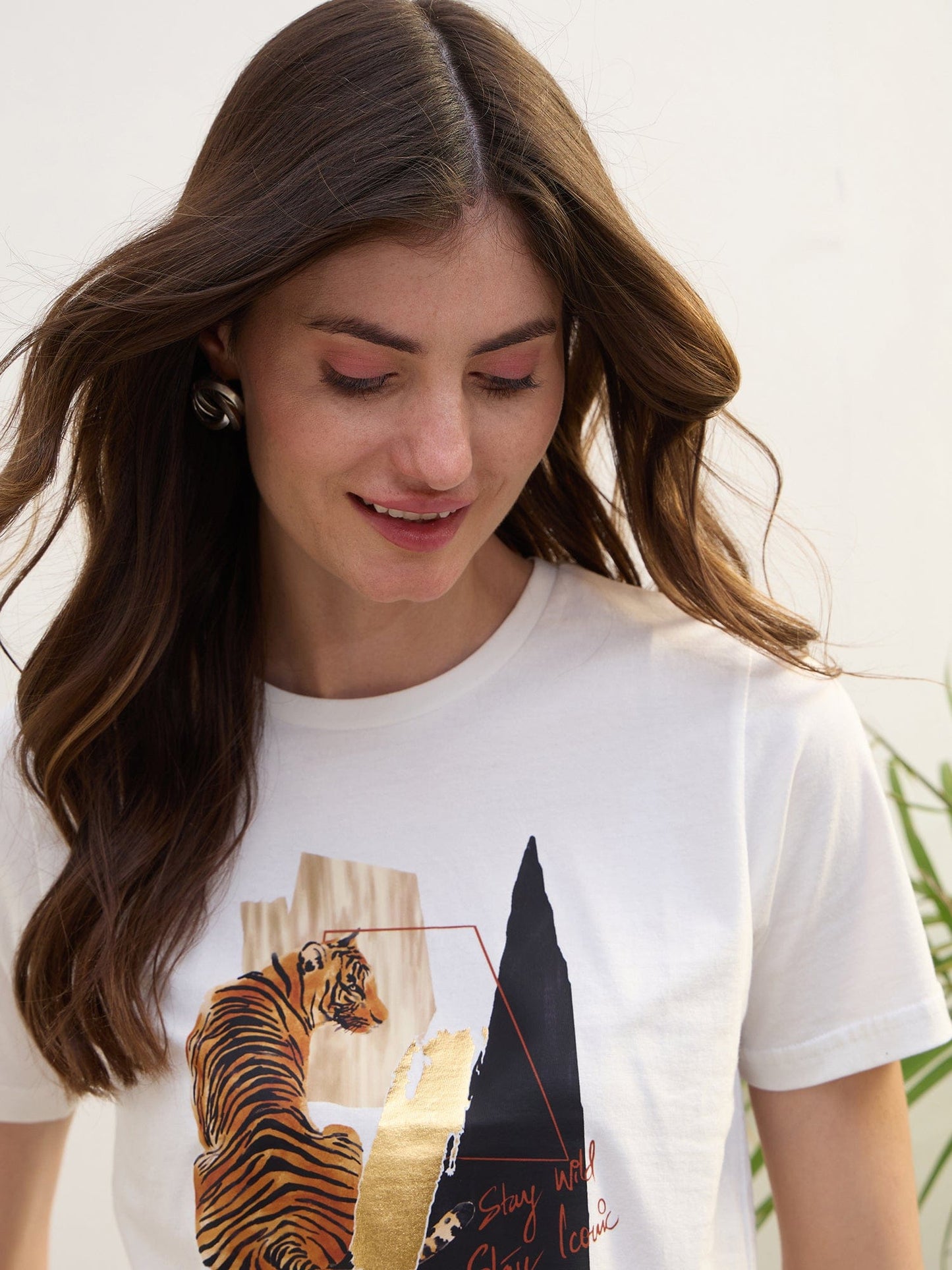 Discover the perfect blend of comfort and style with our stretchable white t-shirt for women. Crafted from pure cotton fabric, this tee offers a soft touch and breathable feel, ideal for everyday wear. Featuring a regular graphic print pattern, it adds a touch of flair to your casual wardrobe. The short sleeves and round neck design ensure a classic look, while the pull-on closure provides ease of wear. Whether you're running errands or relaxing at home, this versatile t-shirt is a must-have staple.