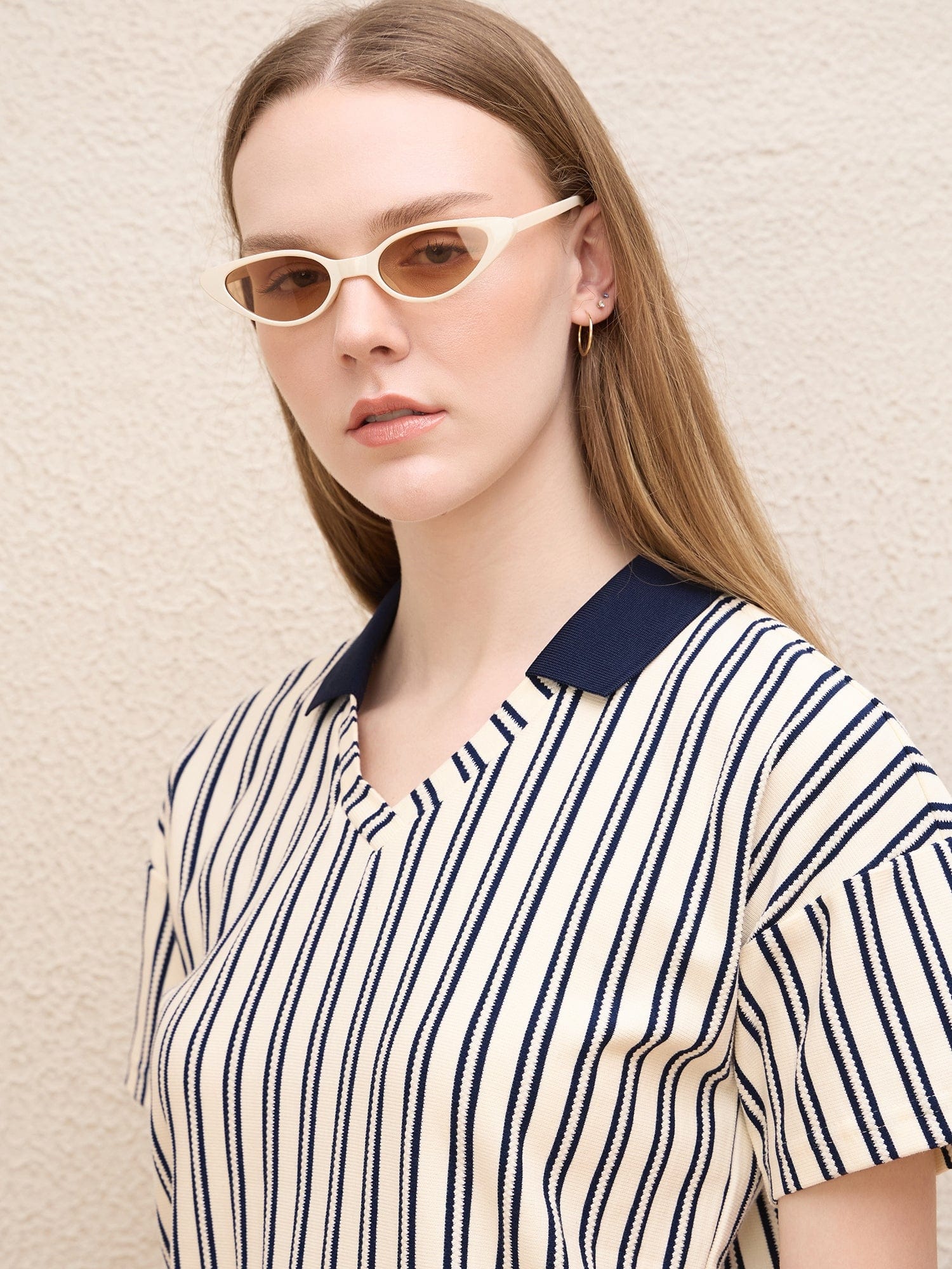 Discover the perfect blend of style and comfort with our cream-colored t-shirt for women. Featuring a classic regular stripe pattern, this short sleeve tee is designed with a chic jonny collar that adds a touch of elegance to your casual wardrobe. Made from pure cotton fabric, it ensures breathability and softness against your skin. The pull-on closure offers ease of wear, while the stretchable material provides a flattering fit that moves with you. Whether youre dressing up for a day out or keeping it casual at home, this versatile t-shirt is an essential addition to your collection.