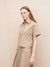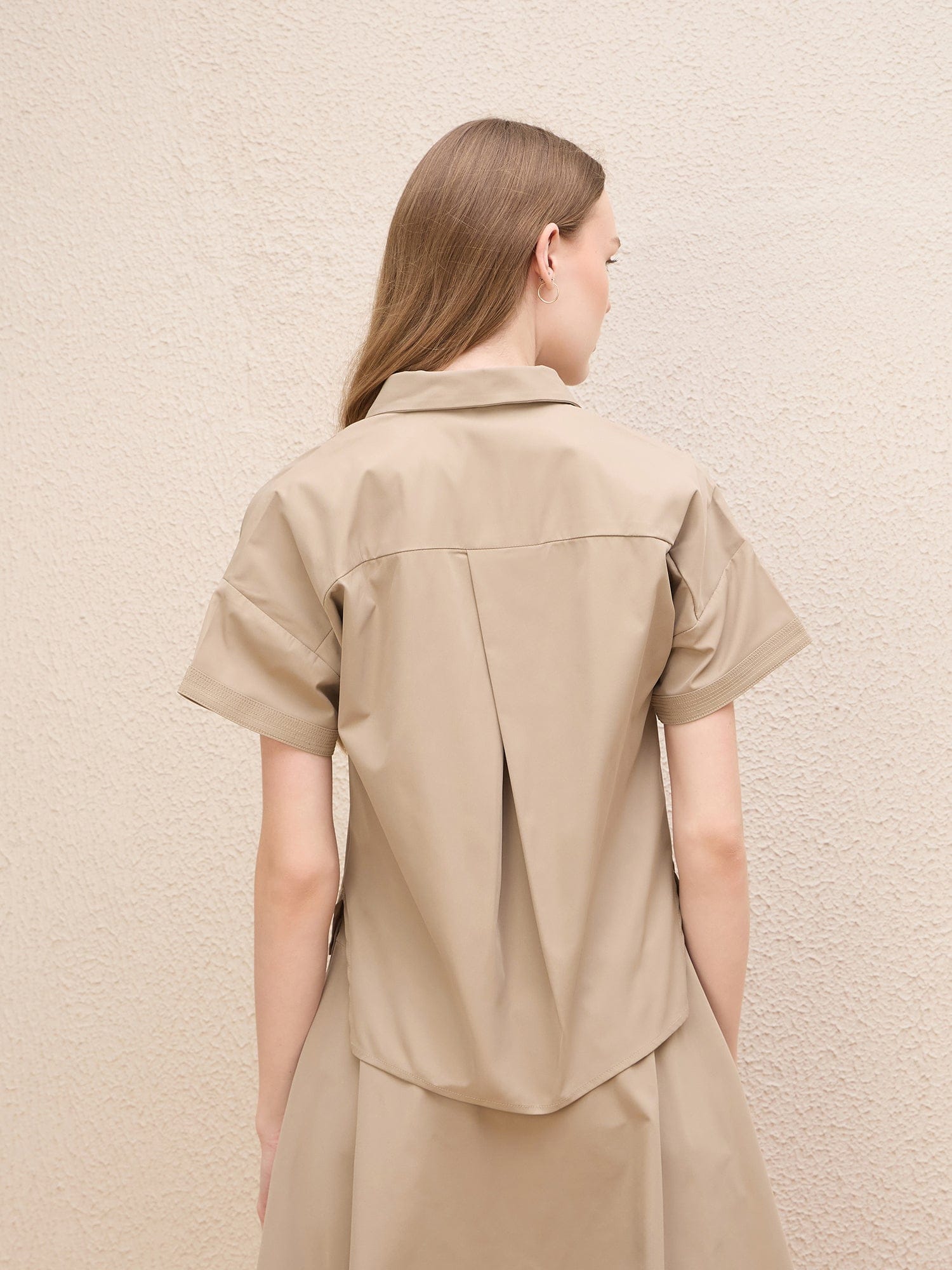 Discover effortless style with our beige t-shirt style top, designed for women who appreciate comfort and elegance. This loose-fit top features a solid pattern that complements any wardrobe. Crafted from a high-quality polyester blend fabric, it ensures durability and a soft touch against the skin. The short sleeves and classic shirt collar add a timeless appeal, while the button closure offers versatile styling options. Intricate stitch line details enhance its sophisticated look, making it perfect for both casual outings and more polished occasions. Elevate your everyday ensemble with this chic essential.