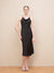 Elevate your wardrobe with our sleek midi slip dress in classic black. Designed for a body-hugging fit, this dress features a solid pattern that exudes timeless elegance. The sleeveless design and cowl neck add a touch of sophistication, while the luxurious polyester fabric ensures comfort and style. The pull-on closure offers ease of wear, making it perfect for any occasion. Adding a modern twist, the metal chain straps provide an edgy yet chic detail, making this dress a standout piece in your collection. Ideal for evening events or a night out, it's the ultimate blend of style and comfort.