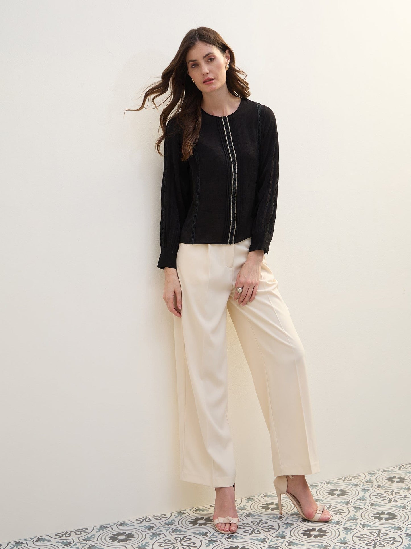 Discover the perfect blend of style and comfort with our beige pleated trousers for women. Crafted from soft terry fabric, these trousers offer a luxurious feel while ensuring durability. The mid-rise design provides a flattering fit, complemented by a straight cut that elongates the legs. Featuring a solid pattern, these trousers are versatile for any occasion. The hook closure adds a touch of sophistication, making them easy to wear. Ideal for both casual outings and professional settings, these trousers are a wardrobe essential.