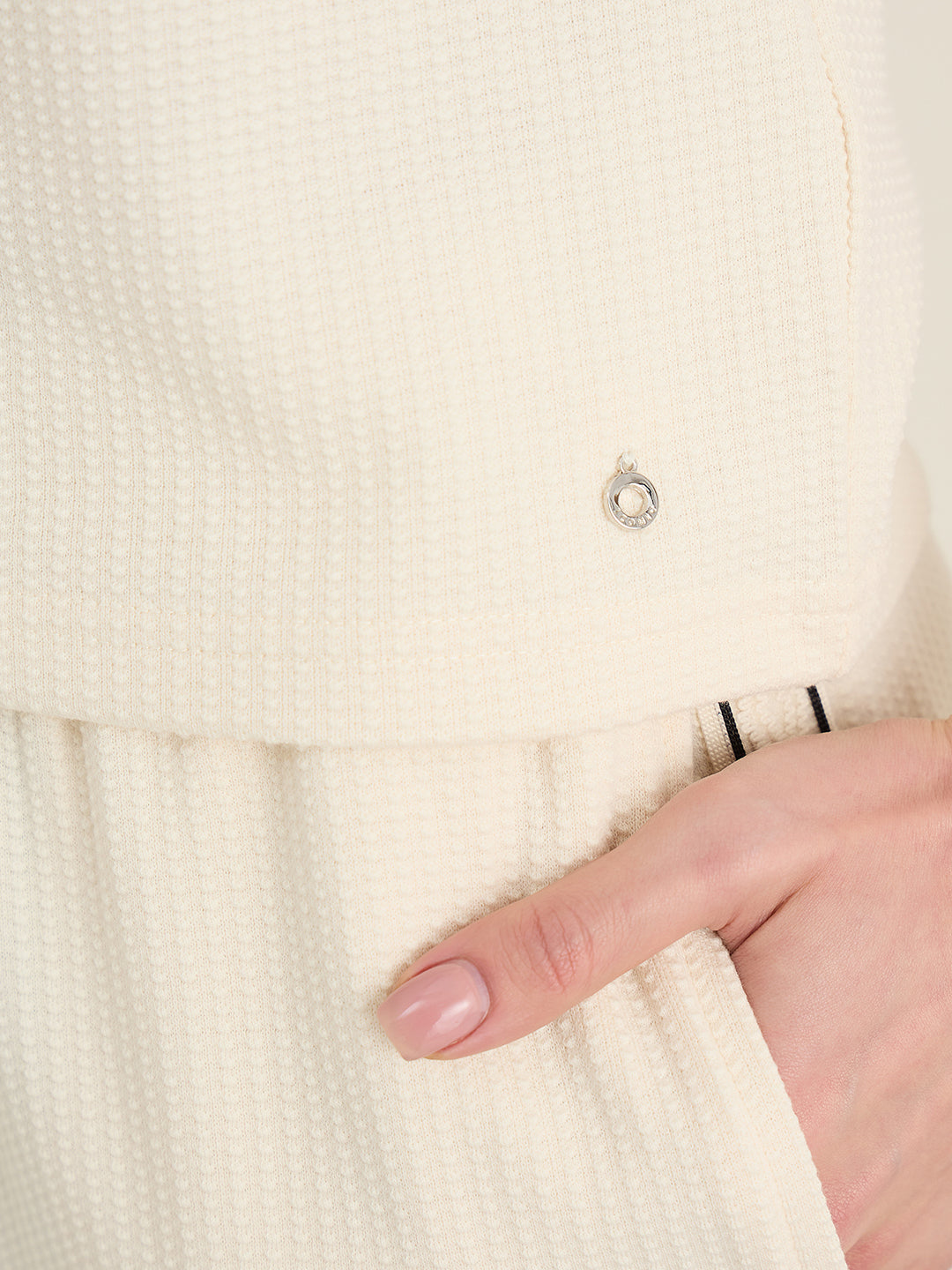 ICONIC Womens Cream Woven Design Round Neck Top