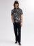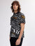 Men Black Printed Polo Collar Short Sleeves Tshirt