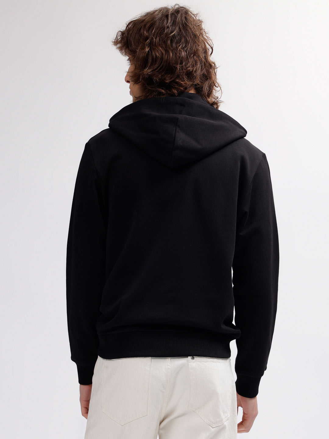 Step up your style game with this effortlessly cool black sweatshirt. Featuring a regular fit and printed pattern, this hoodie is perfect for any casual occasion. Crafted from a blend of 95% cotton and 5% elastane fabric, it offers both comfort and flexibility. Complete with full sleeves and a convenient slip-on closure, this sweatshirt is a must-have for fashion-forward men.
